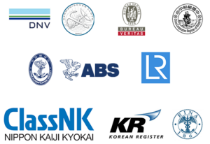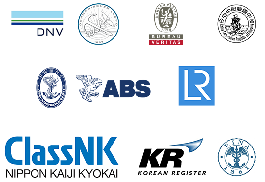 We have achieved various approvals from recongnised bodies such as ABS(American Bureau of Shipping), LR(Lloyd’s Registrar), DNV, BV, NKK, RINA, GL and TUV SUD(formerly PSB).